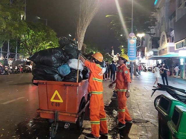 \'Biển\' rác ở trung tâm Sài Gòn sau màn pháo hoa đêm giao thừa