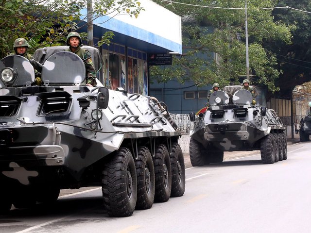 Các vị trí cần sự bảo vệ đặc biệt đều được huy động xe thiết giáp, xe bọc thép đặc chủng cùng nhiều chiến sĩ bồng súng.