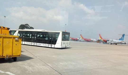 Xe buýt sân bay \"trôi\" vênh hàng rào ở Tân Sơn Nhất