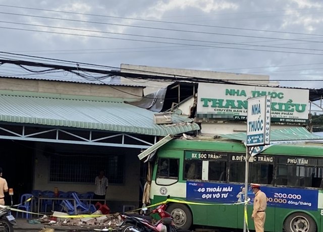 Xe buýt lao vào nhà thuốc ở Sóc Trăng