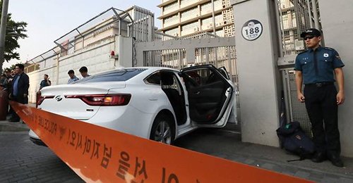 Xe chở 28 bình nhiên liệu lao vào đại sứ quán Mỹ tại Hàn Quốc