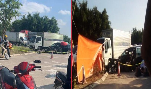 Cú tông mạnh trực diện vào đầu xe tải khiến 2 mẹ con ngồi trên xe ô tô con thiệt mạng, chồng và 2 người con nữa bị thương nặng.