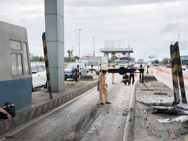 Tài xế lái xe container do buồn ngủ nên lao thẳng vào trạm cao tốc Trung Lương - TP.HCM, tông vỡ nát cabin thu phí.