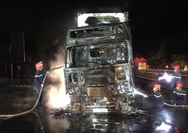 Xe đầu kéo cháy trơ khung trên QL 1A