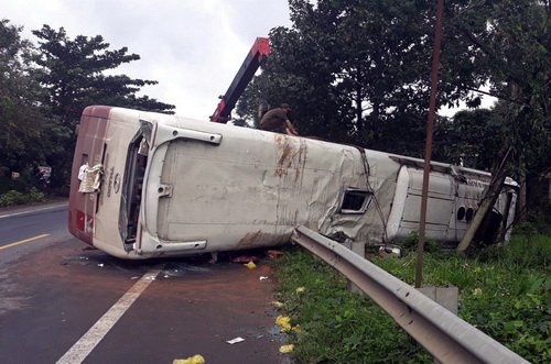 Người dân Lâm Đồng phải đập cửa cứu khoảng 30 hành khách ra khỏi ôtô lật trên Quốc lộ 20.