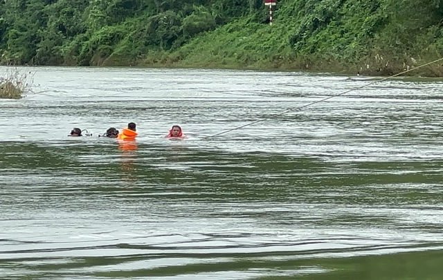 Lực lượng chức năng cho người lặn xuống đáy sông và xác định được vị trí chiếc xe chìm, tuy nhiên, qua kiểm tra không thấy hai nạn nhân mất tích trong cabin xe.