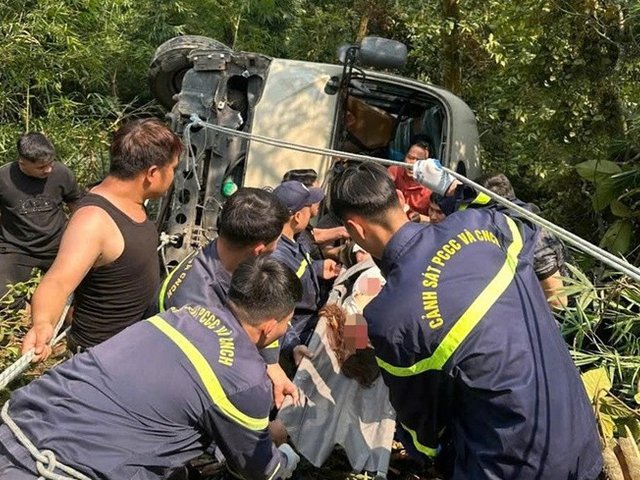 Lật xe khách trên đèo Tam Đảo, 2 người chết, 11 người bị thương