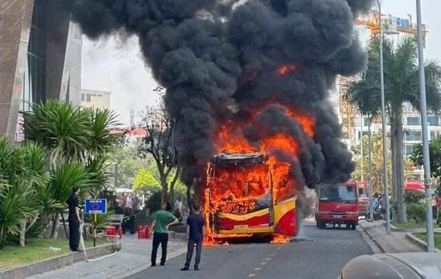 Cháy xe khách ngùn ngụt giữa trung tâm Nha Trang, nhiều người hoảng loạn