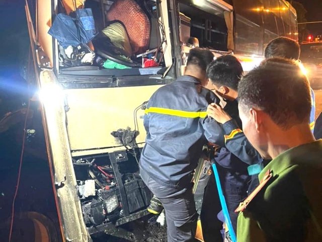 Chiếc xe khách BKS 29B-606.xx đang đi thì tông vào đuôi xe tải làm 1 người chết tại chỗ, 19 người bị thương.