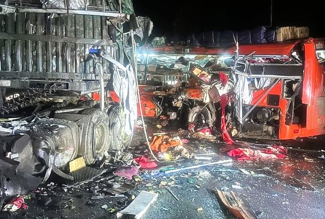 Hiện trường vụ xe khách tông xe đầu kéo khiến 6 người chết