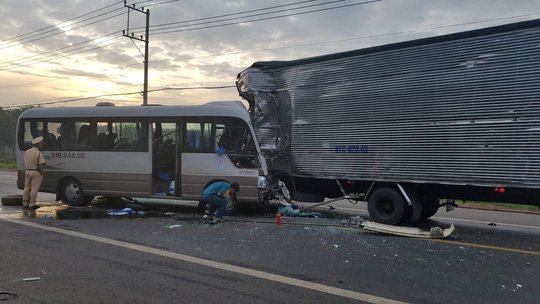 Xe khách tông xe tải trên Quốc lộ 20, 18 người vào cấp cứu