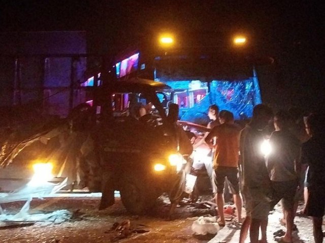 Cú tông mạnh trực diện giữa xe tải và xe khách khiến phần đầu 2 xe biến dạng, kính chắn gió vỡ nát. Tài xế xe tải mắc kẹt trong cabin. Sau hơn 1 giờ nỗ lực cứu hộ, tài xế lái xe tải đã được đưa ra khỏi cabin trong tình trạng bị gãy chân, được chuyển đi cấp cứu.