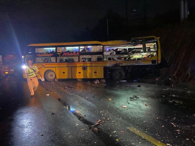 Cú va chạm mạnh khiến 2 người tử vong tại chỗ (gồm tài xế xe tải và 1 người trên xe khách) và 13 người bị thương (1 người trên xe tải và 12 người trên xe khách). Tại hiện trường, phần đầu của xe tải và xe khách bị biến dạng hoàn toàn.