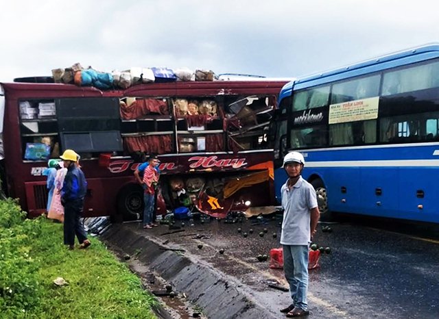 Hai ôtô giường nằm chạy ngược chiều trên đường Hồ Chí Minh đã tông nhau khiến 7 người bị thương, chiều 2/10.