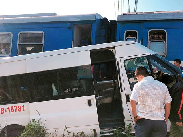 Tàu hỏa tông xe khách, năm người bị thương