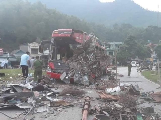 Đang lưu thông cùng chiều, chiếc xe ôtô khách biển Thái Bình bất ngờ tông vào đuôi xe đầu kéo ở Thanh Hóa, sau đó văng ra tiếp tục tông sập 1 nhà dân ven đường khiến phụ xe tử vong tại chỗ, nhiều người bị thương.