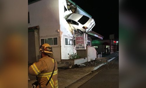 Một chiếc xe lao vào tầng hai tòa nhà văn phòng ở quận Cam, California, khiến hai người bị thương.