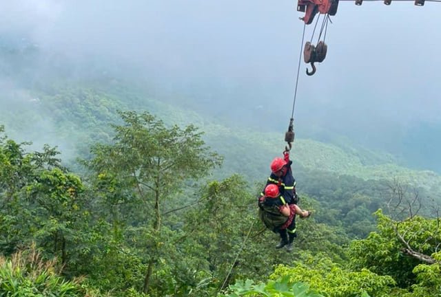Hai người đi xe máy lao xuống vực tại Vườn Quốc gia Ba Vì được lực lượng Cảnh sát Phòng cháy, chữa cháy và Cứu nạn, Công an TP Hà Nội kịp thời giải cứu.