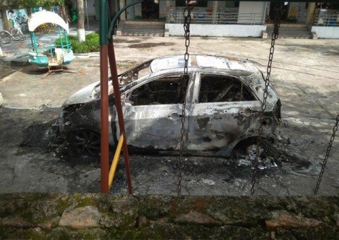 Xe ô tô của sư trụ trì bốc cháy dữ dội trong trường mầm non