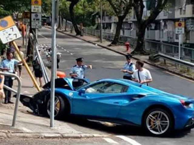 Ferrari nửa triệu đô móp đầu vì tránh chó chạy qua đường ở Hong Kong