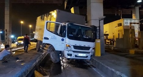 Xe tải húc đổ thanh chắn cầu vượt Thái Hà, tài xế khai do buồn ngủ