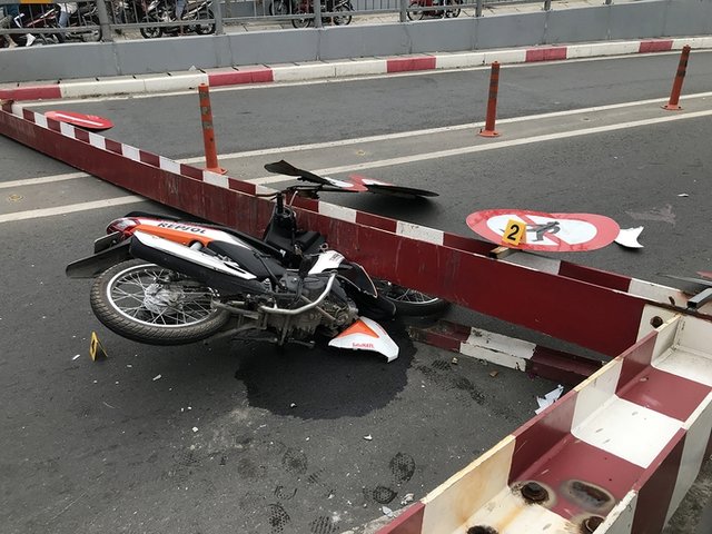 Xe tải chạy vào đường cấm, kéo sập thanh giới hạn chiều cao hầm chui cầu Phạm Văn Chí, quận 6, đè lên người đi xe máy, trưa 19/1.