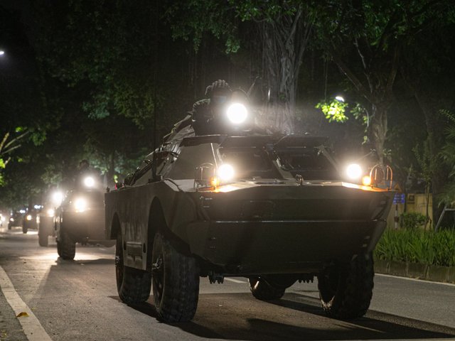 Đêm 19/8 hàng chục chiếc xe thiết giáp, tên lửa, pháo, hành quân từ Trung tâm Huấn luyện quân sự Quốc gia 4 về nội thành Hà Nội, để chuẩn bị cho lễ diễu binh A80.
