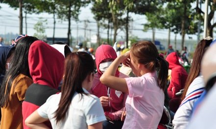 Hàng ngàn công nhân của công ty Texwell Vina tập trung trước cổng công ty sau Tết để chờ hướng giải quyết của công ty, vì sợ bị cho vào "bẫy" pháp lý để tiếp tục bị xù nợ.