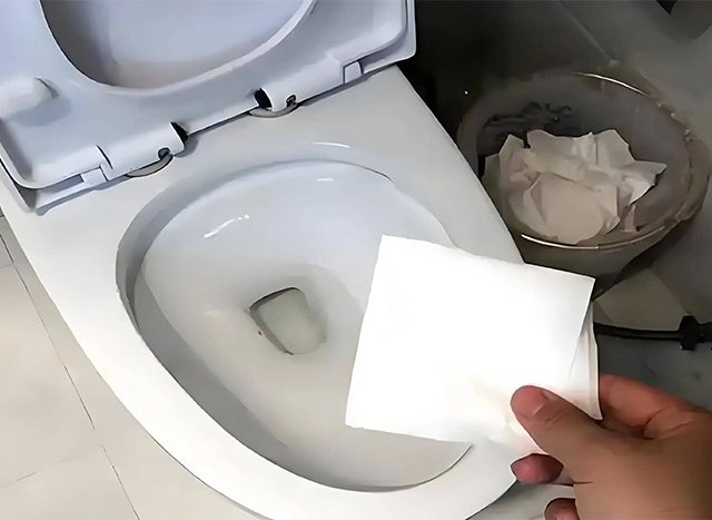 Nên cho giấy vệ sinh vào bồn cầu hay thùng rác?