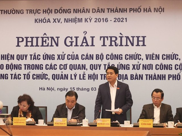 Chủ tịch UBND thành phố Nguyễn Đức Chung khẳng định, sẽ rà soát, chấn chỉnh những thiếu sót, để nâng cao chất lượng phục vụ nhân dân tại phiên giải trình liên quan đến quy tắc ứng xử chuẩn mực của cán bộ, công chức, viên chức, người lao động thành phố và quy tắc ứng xử nơi công cộng sáng 15.3.