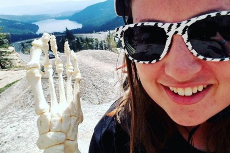 Một người phụ nữ từng sống sót qua căn bệnh ung thư quái ác đã tạo tài khoản Instagram để đăng những bức ảnh mình với bộ xương bàn chân đi khắp nước Mỹ.