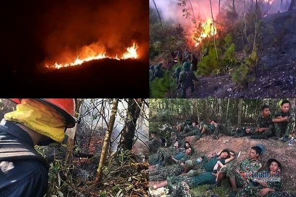 Đến sáng nay, ngọn lửa cơ bản được khống chế sau nỗ lực của hàng trăm người xuyên đêm dập lửa, tuy nhiên đến trưa nay, lửa tiếp tục bùng phát.