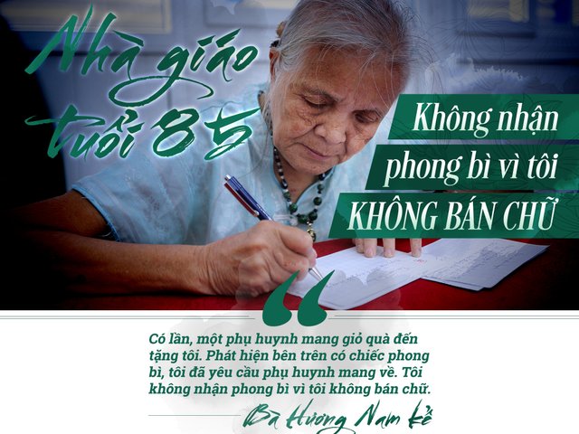 “Có lần, một phụ huynh mang giỏ quà đến tặng tôi. Phát hiện bên trên có chiếc phong bì, tôi đã yêu cầu phụ huynh mang về. Tôi không nhận phong bì vì tôi không bán chữ”, bà Hương Nam kể.