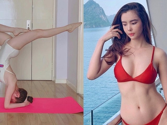 Hoa hậu Du lịch Thế giới 2018 Huỳnh Vy dành hầu hết thời gian ở nhà tránh dịch để tập yoga để giúp tinh thần thoải mái, sở hữu vóc dáng chuẩn.