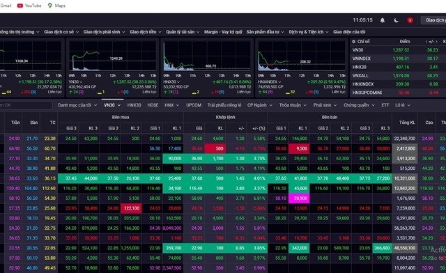 Sáng nay (10-4), nhà đầu tư đua nhau mua cổ phiếu giúp hầu hết các mã lên giá, trong đó phần lớn tăng kịch trần, VN-Index “đội” hơn 70 điểm.