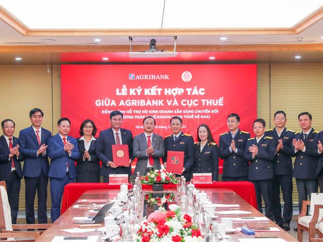 Ngày 03/12/2025, tại Trụ sở chính, Ngân hàng Nông nghiệp và Phát triển Nông thôn Việt Nam (Agribank) và Cục Thuế (Bộ Tài chính) tổ chức Lễ ký kết hợp tác nhằm đồng hành hỗ trợ hộ kinh doanh chuyển đổi từ thuế khoán sang thuế kê khai.