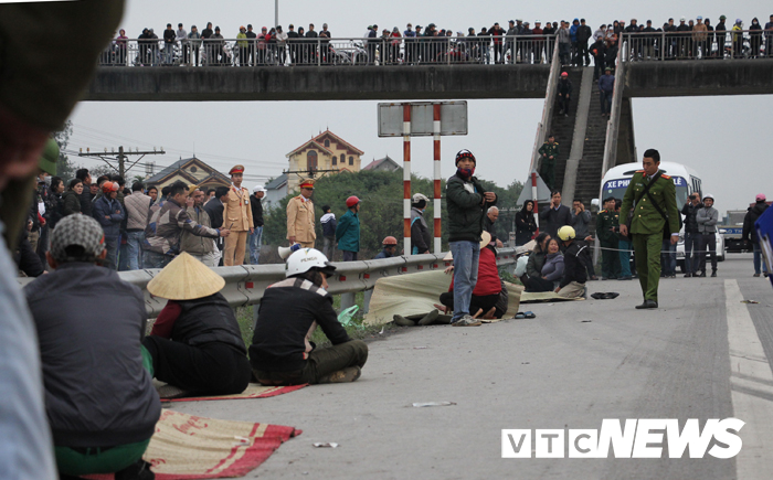 Trên đoạn đường dài gần 100m, 7 thi thể nạn nhân đắp chiếu nằm la liệt bên lề đường, bên cạnh là người thân đang ... |