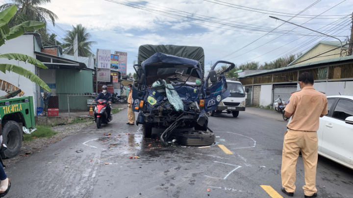Cú va chạm giữa 2 xe tải trên Quốc lộ 57C (đoạn qua địa phận TP Bến Tre, tỉnh Bến Tre) khiến một tài xế tử vong.