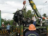 Hiện, chủ xe đang tiến hành các giải pháp để đưa thùng container ra khỏi hiện trường. Theo điều tra ban đầu, nguyên nhân vụ tai nạn là do tài xế Nguyễn Duy Linh ngủ gật.