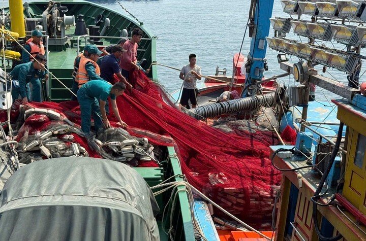 Sau khi tổ chức cứu hộ ban đầu, Biên đội tàu tiếp tục kẹp, lai dắt tàu cá gặp nạn vào bờ, bàn giao cho Trạm Biên phòng Mân Quang để tiếp tục hỗ trợ lên đà, xử lý chống chìm, bảo đảm an toàn.