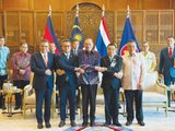 Tổng thống Trump chứng kiến Thủ tướng Campuchia Hun Manet và Thủ tướng Thái Lan Anutin Charnvirakul ký thỏa thuận ngừng bắn mở rộng tại hội nghị thượng đỉnh thường niên của Hiệp hội các quốc gia Đông Nam Á (ASEAN).