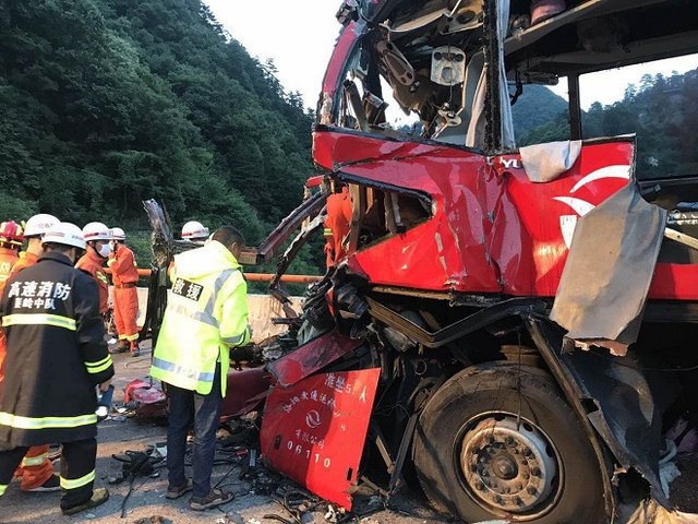 Xe buýt bị nổ lốp và đâm vào xe tải trên cao tốc ở tỉnh Giang Tô sáng 28/9, khiến ít nhất 36 người chết và 36 người bị thương.