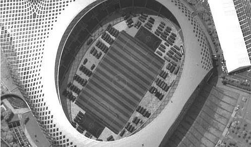 Ảnh chụp vệ tinh ngày 12/8 cho thấy xe bọc thép của cảnh sát vũ trang Trung Quốc đỗ trên sân vận động tại Thâm Quyến, giáp với Hong Kong.