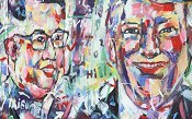 Trước thềm Hội nghị thượng đỉnh Mỹ và Triều Tiên sắp diễn ra tại Hà Nội, họa sĩ Trần Lâm Bình đã vẽ chân dung 2 nhà lãnh đạo với mong muốn hòa bình thế giới.
