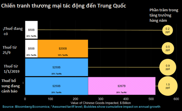 Các trang báo quốc tế và các nhà phân tích hàng đầu ngay lập tức đưa ra những nhận định về tác động tiêu cực có thể xảy ra với nền kinh tế Trung Quốc sau khi bị Mỹ giáng đòn thuế mới nhất lên gói hàng 200 tỷ USD vào sáng 18/9.