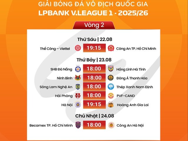 Lịch thi đấu, kênh xem trực tiếp V.Leaue 2025-2026 vòng 2