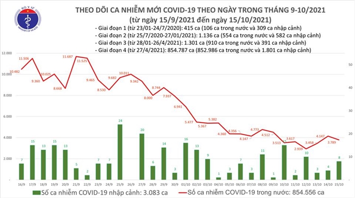 16/10/2021 01:49Thêm 3.797 ca COVID-19 ngày 15/10