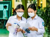 Một thí sinh TP.HCM tranh thủ ôn lại kiến thức trước khi vào phòng thi, kỳ thi vào lớp 10 năm 2024. (Ảnh: Thy Huệ)