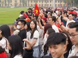 Ngay từ sớm, hàng ngàn người dân, cựu chiến binh, du khách cùng lãnh đạo tỉnh Quảng Trị về di tích đôi bờ Hiền Lương - Bến Hải để chứng kiến thời khắc thượng cờ thiêng liêng.