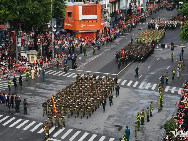 Hàng vạn bước chân đều tăm tắp, đội ngũ chỉnh tề và ánh mắt kiên định của các chiến sĩ tạo nên khung cảnh hùng tráng trong buổi tổng duyệt A80 tại Hà Nội.